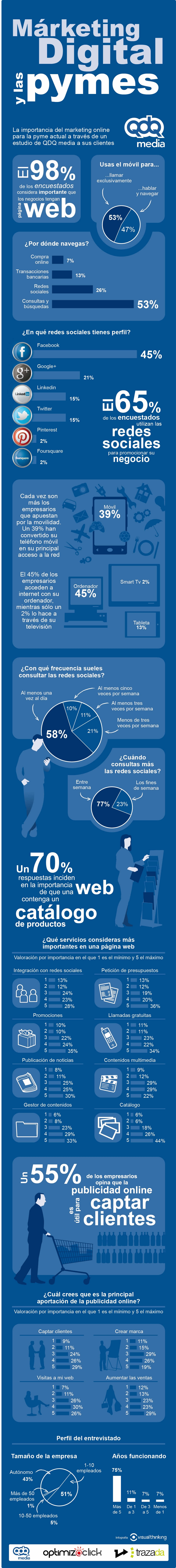 Ésta es una de las conclusiones sacadas del estudio realizado por la empresa QDQ media sobre como apuestan las Pymes españolas por el marketing digital para impulsar sus negocios.